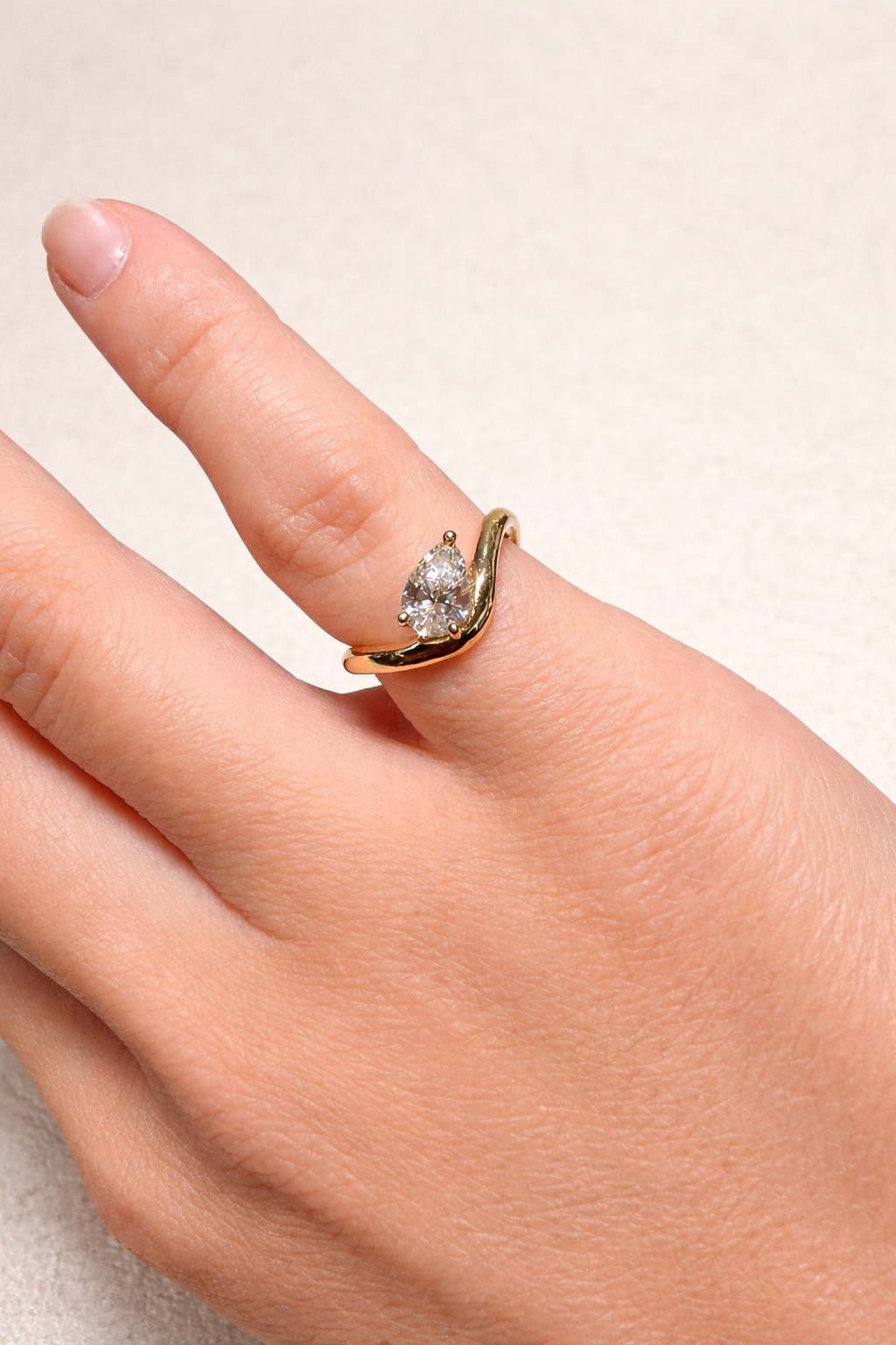 Délicate mais affirmée, cette pinky ring revisite l’iconique diamant poire dans une version minimaliste et moderne.